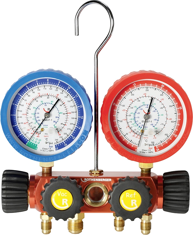 - Четырехпозиционный аналоговый манометрический коллектор для хладагентов R22, R134A, R407C, R404A Rothenberger 1/4 SAE