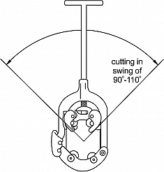 - Благодаря минимальному вращению, необходимому для резки труб (угол поворота 90° – 110°), идеально подходит для работы в труднодоступных местах и стесненных условиях