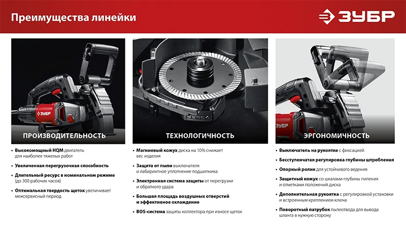 Преимущества штробореза Зубр Мастер ЗШ-30-1205 Т:
