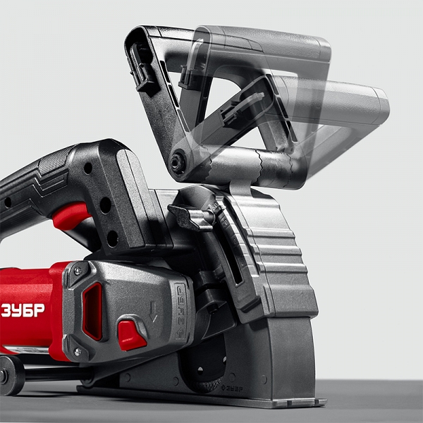 - Закрывающий зону работы подпружиненный кожух предотвращает разброс продуктов реза при любой глубине штробы